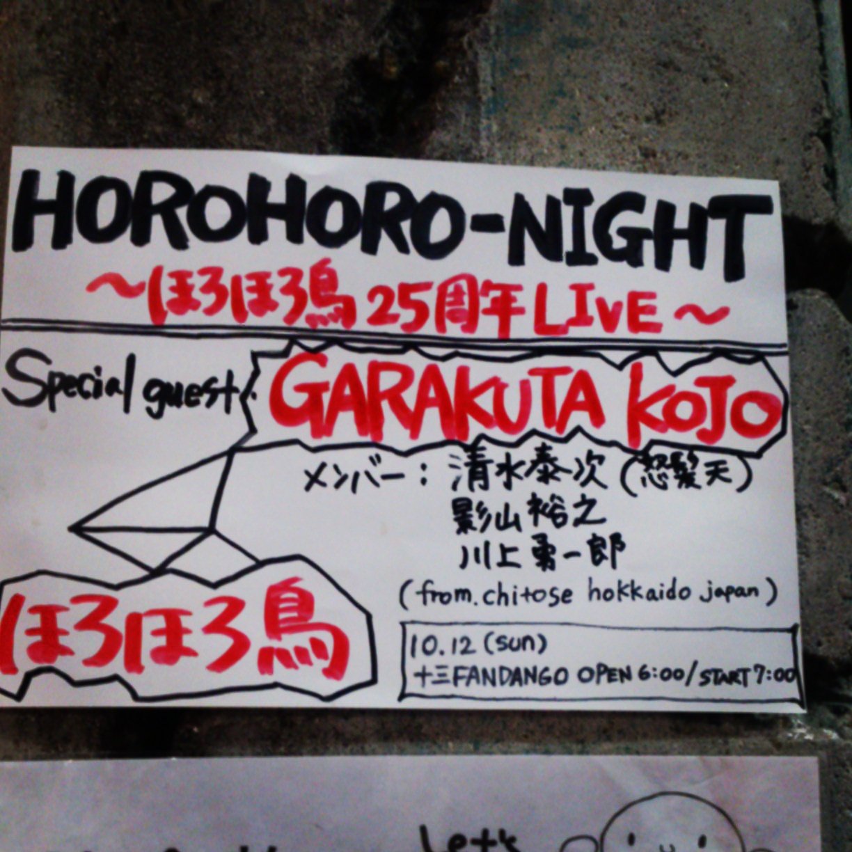 ほろほろ鳥のライブのとき、階段のところで3人揃って観てました。